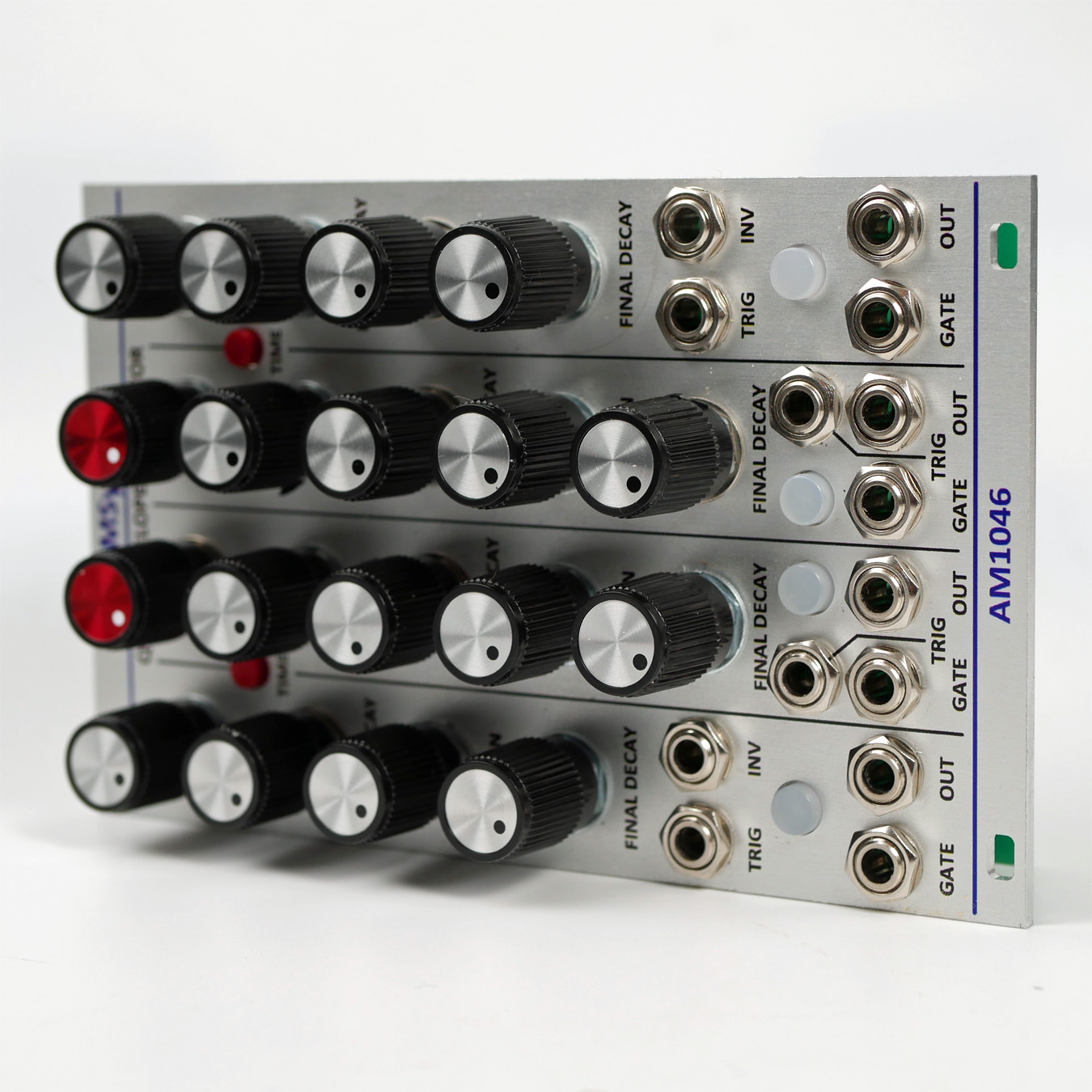 The AM1046 is a 16HP module that replicates the original Quad Envelope Generator module from the ARP 2500.